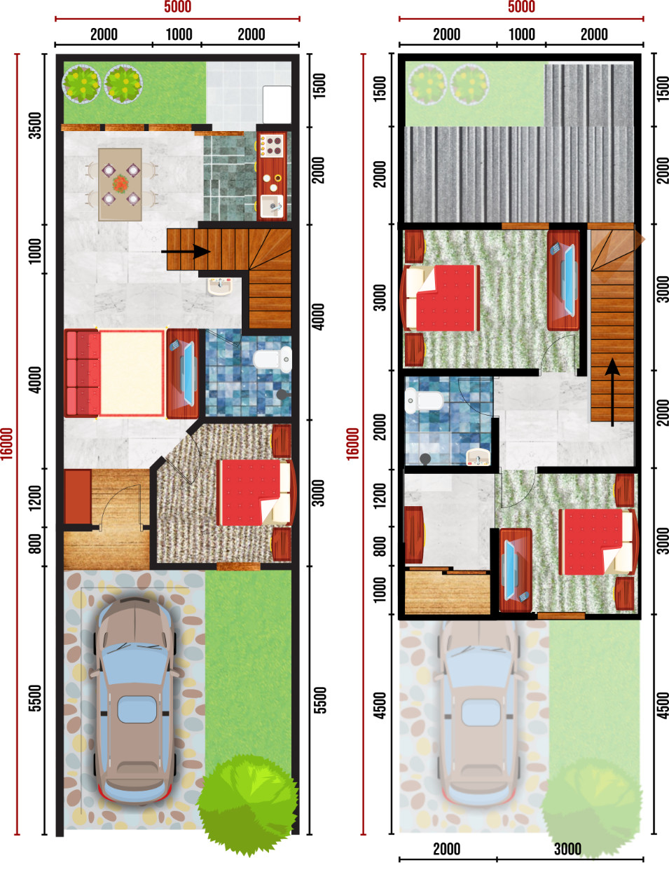 - Atap: Genteng beton dicat